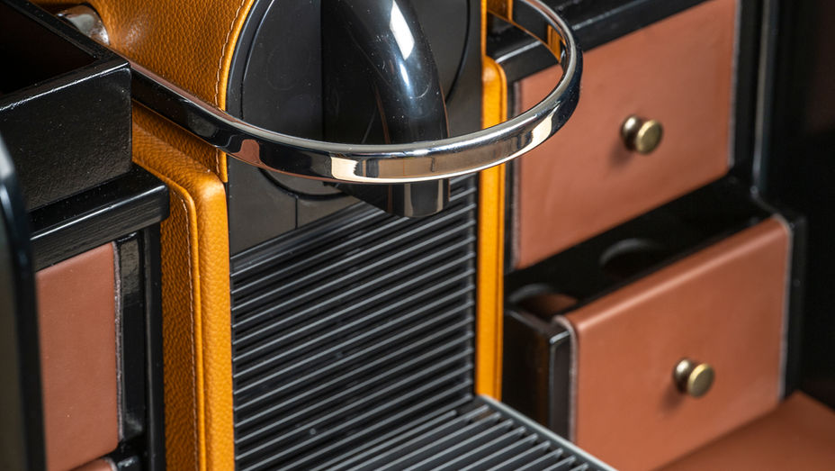 In the centre of the case sits a Pinel et Pinel Paris, hand finished Krups Nespresso Pixie Coffee Machine. Flanked either side by custom drawers, especially appointed to coffee pods and all the accompaniments required. With a dedicated area on top to store espresso cups, saucers and snacks.